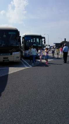 羽生PAに着きました。道路の混雑の状況によりますが、羽生PAから学校まで約1時間半位とみています。 予定より早い4時半頃になりそうです。