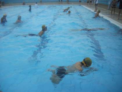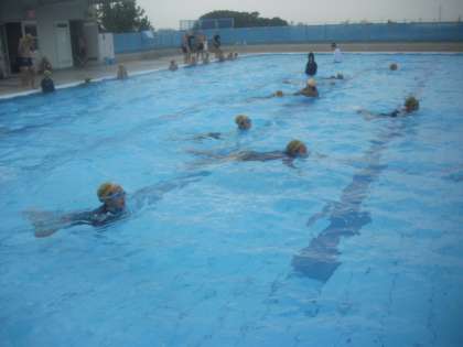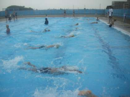 太陽がちょうどかげる中、5・6年生の水泳指導が行われていました。