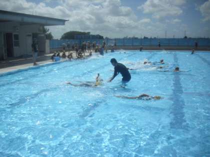 もぐる・浮くことから前に進む(泳ぐ)ことができる児童も増え、個々の課題別に指導が進んでいました〜