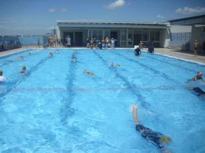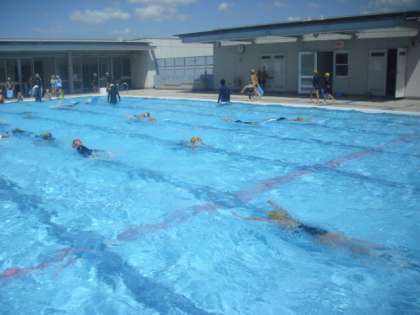 3,4年生も長く泳げるようにプールの縦方向に泳いでの練習です。