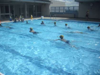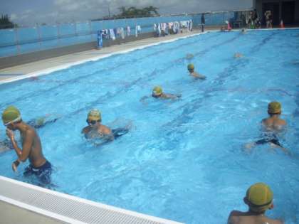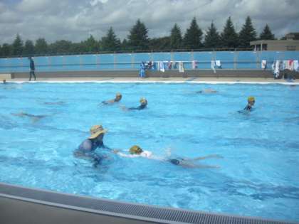 高学年はプールの縦を使って泳ぎ、力を抜きゆっくり長く泳ぐ練習もしていました。