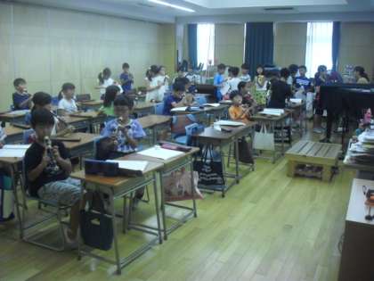 音楽室では3年生がリコーだーの練習に取り組んでいました。
