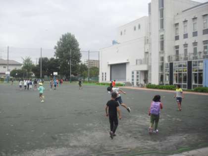 今日は曇り空が広がっていますが、いつものように子どもたちが校庭で活動し始めました。スカットボーイ(投げる遊具)を遠くに飛ばして楽しむ姿も・・・・
