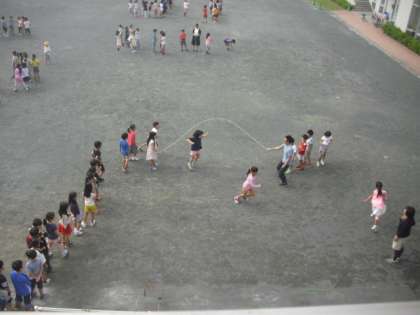 朝の活動・・・低学年はクラスで長縄とびに励んでいました〜