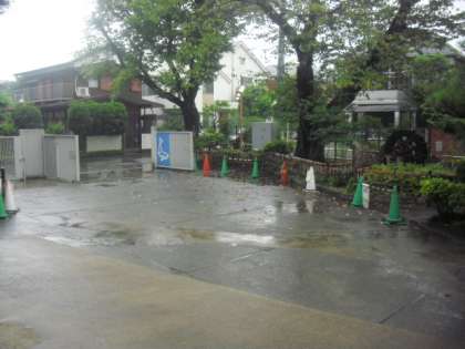 子どもたちが傘をさして登校してきました。いつもより早めに教室に入室させています。