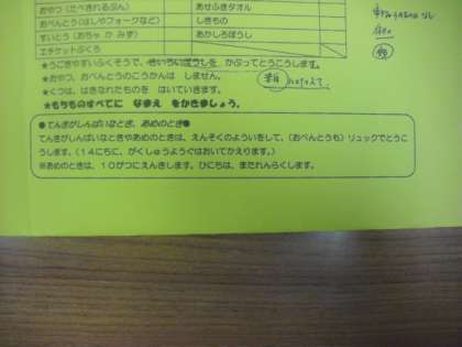 1年生の遠足の予定でしたが、しおりに書いてある通り、10月に延期します。日程は10月11日(木)を予定しています。