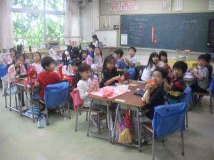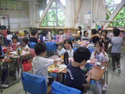 今日はみんなで、給食の時間にお弁当を食べました〜