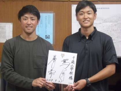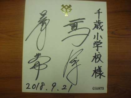 ジャイアンツのコーチから、千歳小学校のみんなにサインをいただきました。