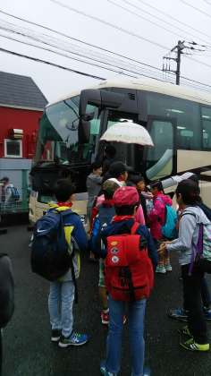 雨粒が 落ちる朝ですが、今日は4年生が社会科見学に出かけます。校庭で出発式を行った後、バスに乗りました。目と耳と心を働かせてしっかり学習してきましょう。