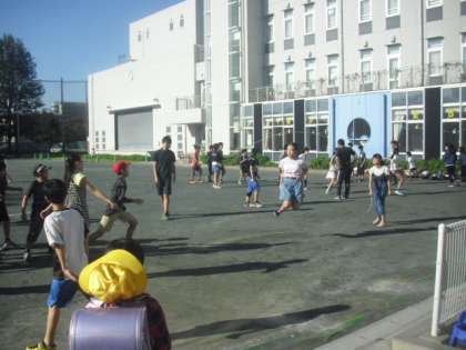 6年生はクラスで長縄とびをしています。