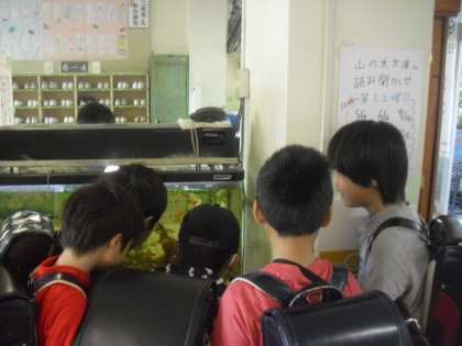 水槽をのぞく子どもたち・・・・