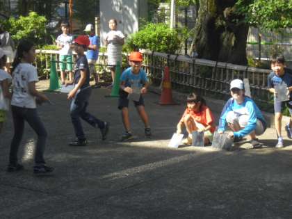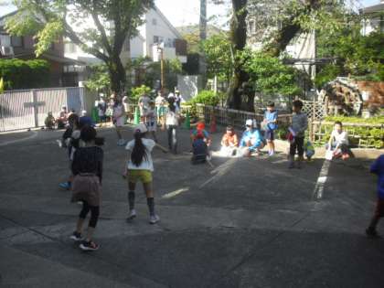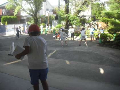 3年生の光の性質についての学習です。外で鏡を使って活動していました。
