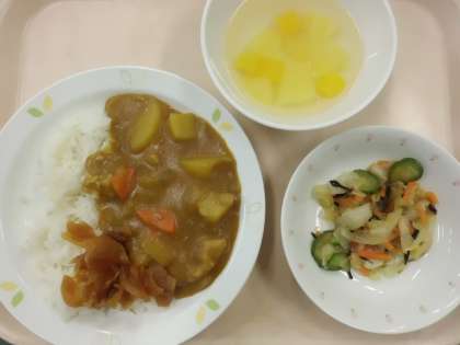 チキンカレーライス・牛乳・福神漬け・海藻サラダ・フルーツポンチ