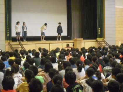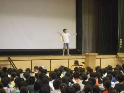 案内役の千歳マン!?が登場し、みんなに千歳小の昔を紹介してくれました〜。