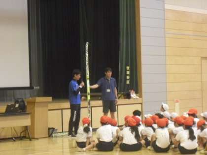みんなもスキージャンプ選手になったつもりで記録に挑戦し、質問にもこたえていただきました〜