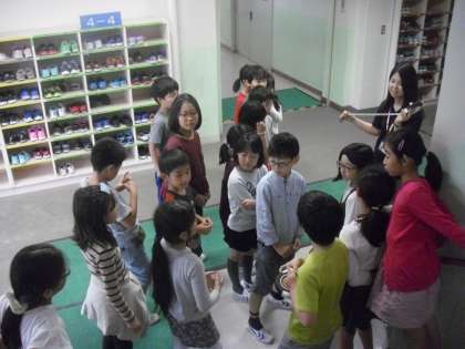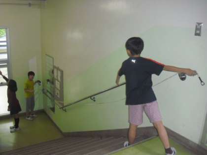 巻き尺を手に、教室を飛び出して、実際に長さを測定していました。