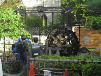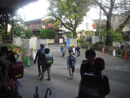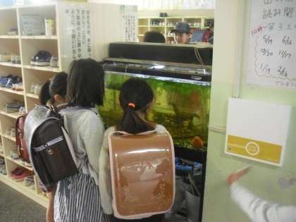 水槽の前、水車のそばなど、それぞれのお気に入りの場所があるようで、おしゃべりしながら入室時刻まで待っています・・・・・