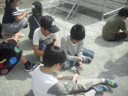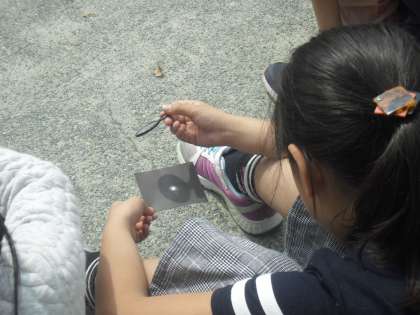 物に日光を当てると物の明るさや暖かさが変わることを学習している3年生・・・・