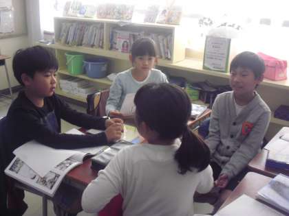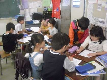 お店で働いている人たちに聞いてみたい質問を班のみんなで話し合い決めていました。