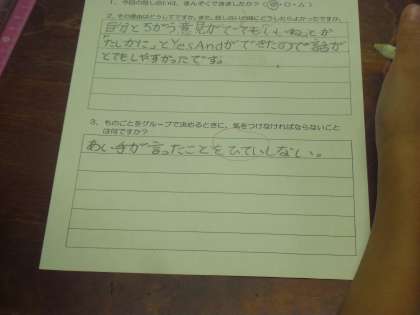 個々に考えたことをグループのみんなで交流しあい、グループとして意見をまとめるアクテビティを行いました。
