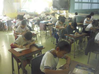 3年生は漢字ドリルの練習をしたり、ミニテストに挑戦したり、朝の活動で係児童が、クラスの皆に怖い話をしているクラスも・・・・