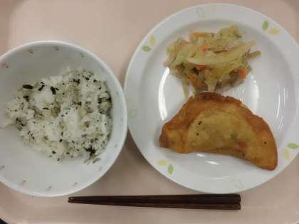 わかめとじゃこごはん・牛乳・ジャンボぎょうざ・春雨サラダ