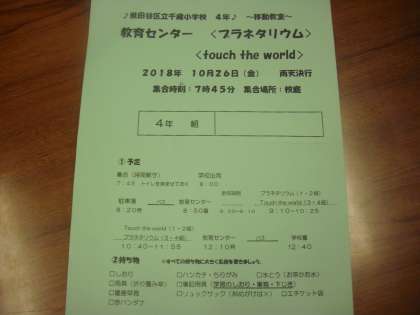 今日は4年生が、世田谷区の教育センターに出かけ、移動教室を実施します。