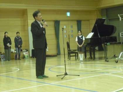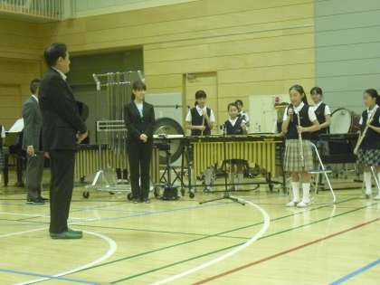 区長さんからお祝いの言葉を直接伝えていただくとともに、演奏を聴いていただき、子どもたちもとてもうれしそうでした。
