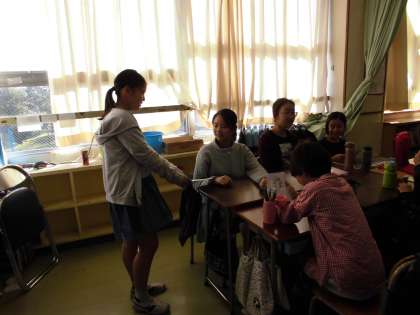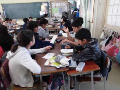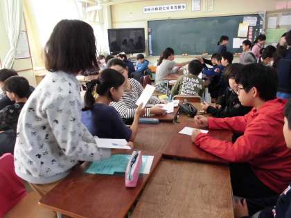 届いた郵便に目を通す6年生・・・・