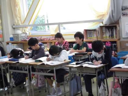 お話の登場人物の気持ちに寄り添いながら考え、意見交流をし、自分のことを振り返り、道徳ノートに学習で考えたことを書き残していきました。