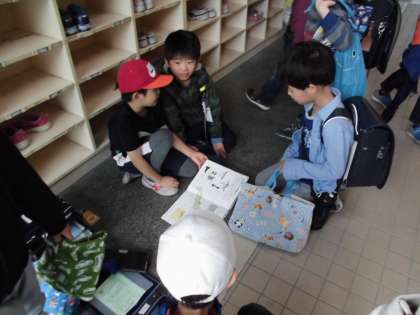水車前でおしゃべりしたり、お気に入りの本を広げて友だちに説明したり・・・