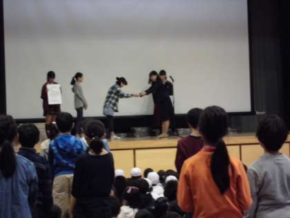 次に日のお吹奏楽団の東日本大会、金賞の話と表彰を行いました。