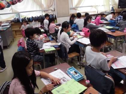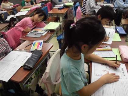 2年生が町探検に出かけ、おすすめの場所を紹介するガイドマップを作成していました。