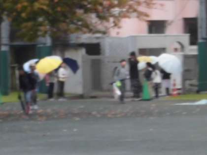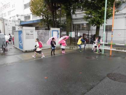 挨拶当番の1年生も傘をさし、皆に声をかけてくれました。
