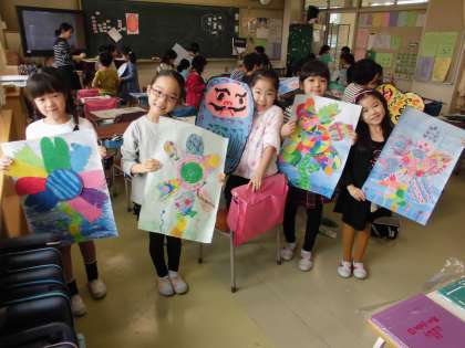 展示したい作品を選んで台紙に貼るところで、みんなが作品を見せてくれました〜