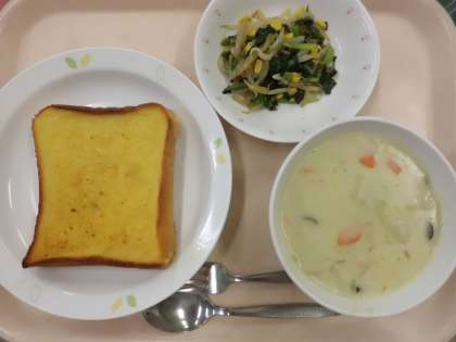 オレンジフレンチトースト・牛乳・ほうれん草サラダ・さつまいもシチュー