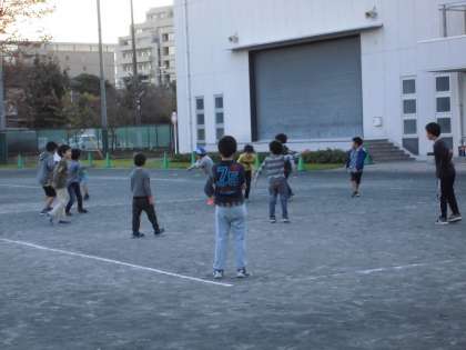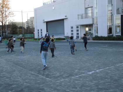 会議が終わったので、校庭に出ると、ドッジボールを楽しむ姿が・・・・