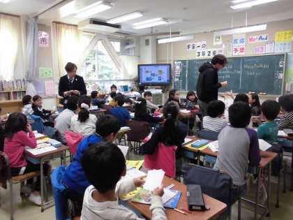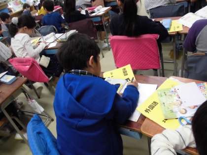 ALTの先生と、担任の先生とで外国語活動の学習が進んでいました。
