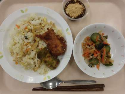 こぎつねずし・牛乳・ちくわの天ぷら・和風サラダ・黒蜜寒天