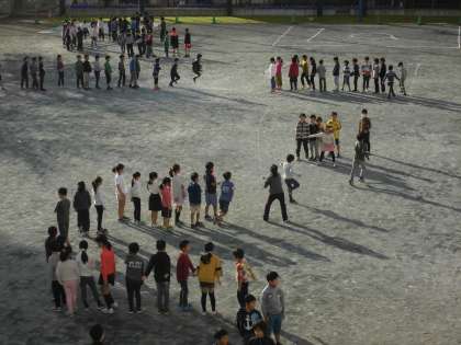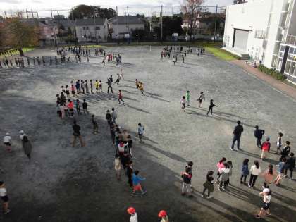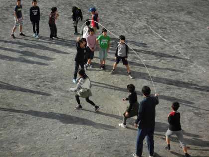 今日も校庭でクラスごとに長縄とびに挑戦しました〜
