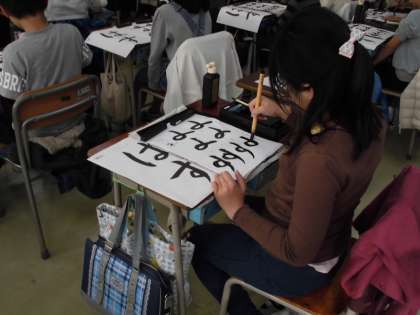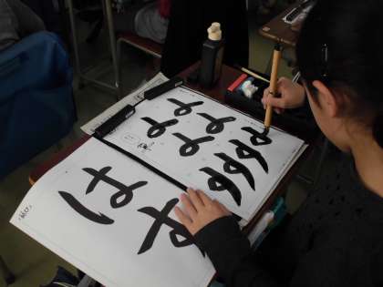 手本をよく見て、ゆっくりしっかり筆を運んで練習しました。