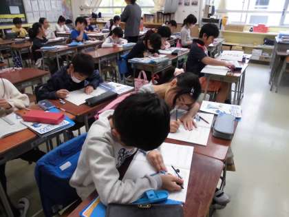 3つの辺の長さが等しい正三角形の性質を使って、正三角形のかき方を考える学習でした。それぞれの解決方法のアイデアが共有できたでしょうか・・・