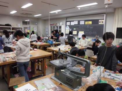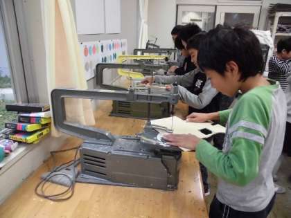糸のこぎりを使って、ベニヤ板を上手にカット・・・
