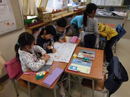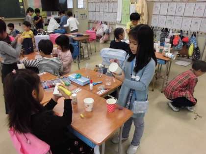 みんなが拾ってきたどんぐりや葉などを使って、楽しい遊びの工夫に取り組んでいました。