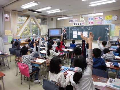 三角定規のかどの大きさ(開き具合)について調べたり、比べたりする学習をしていました。どのように比べたらよいかも考えて問題解決です。