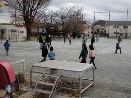 校庭では寒さに負けずに身体を動かし、身体の芯からあたたかくなる子どもたちでした。