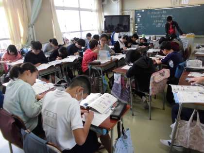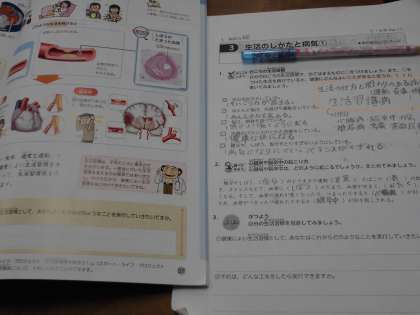 6年生の保健の学習です。高学年の保健では、病気の予防についても学習します。病気は病原体、体の抵抗力、生活行動、環境がかかわりあって起こることを学習し、それらが要因となって起こる病気の予防について理解を深めていました。
