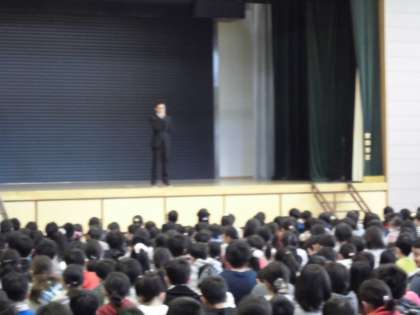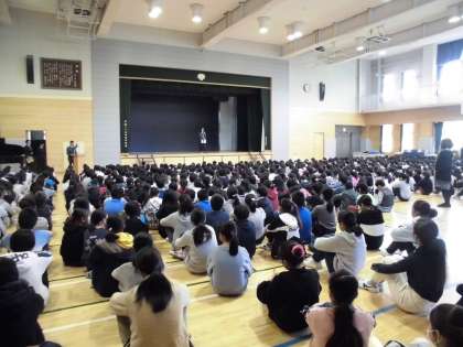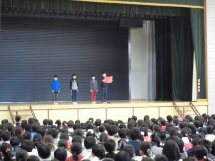 全校児童が体育館に揃い、始業式を行いました。