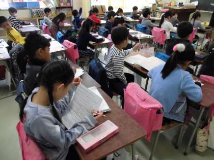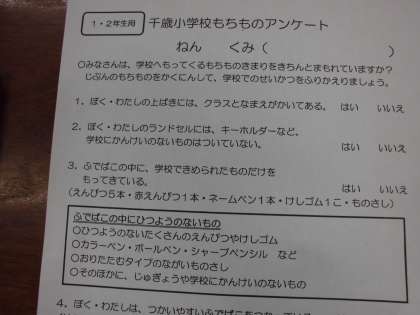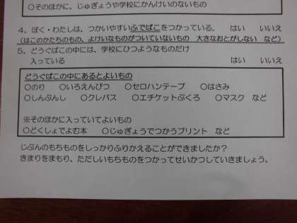 学習に必要のないものは、はいっていないか、名前が書いてあるか、しっかり確認していました。