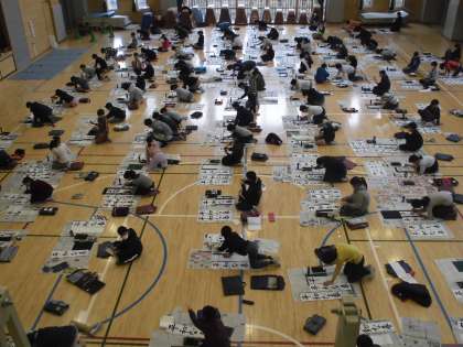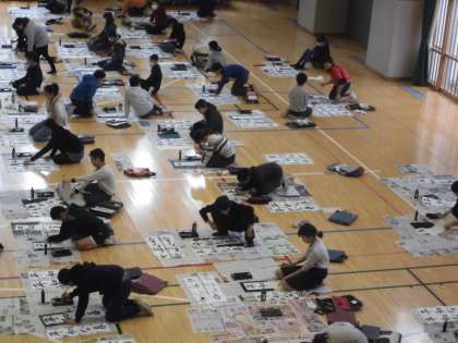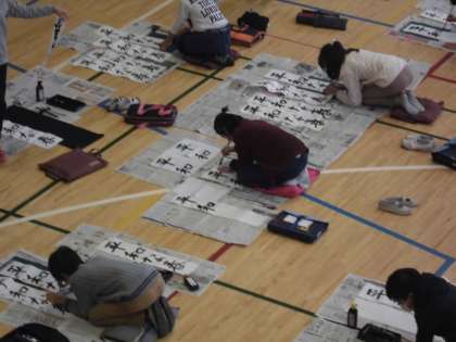 体育館で練習をしてきた書き初めをしました。